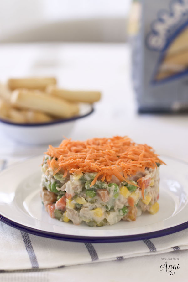 El caso es que hagas como hagas la ensaladilla rusa cuando la sirvas triunfarás y habrás hecho un esfuerzo casi igual a cero. Eso sí, para triunfar bien triunfados una buena ensaladilla debe ser acompañada de palitos de pan o picos, imprescindible. Los míos son palitos saladitos Velarte crujientes y con sal que venían en mi última caja Degustabox que me lo acertaron que no veas ya que siempre hago acopio de picos para la temporada ensaladillera. Si tú también quieres disfrutar de este y otros productos, con este código BPD9E te saldrá la caja por 7,99€ con gastos de envío incluidos. Estos palitos están riquísimos y además son de la terreta, vaya que los hacen aquí al lado.