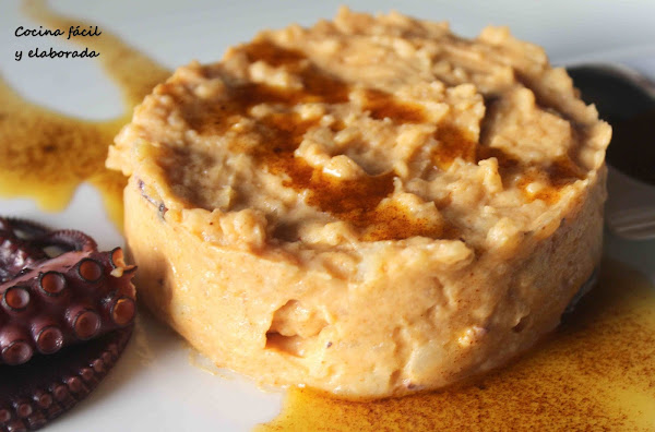 La forma es la misma de una receta tradicional, con el pulpo cocido, pero a la mayonesa le vamos a dar un toque de pimentón agridulce (mezcla de dulce-picante) y como os decía la servimos templada. Seguramente el sabor os recordará al pulpo a la gallega.