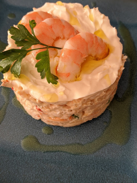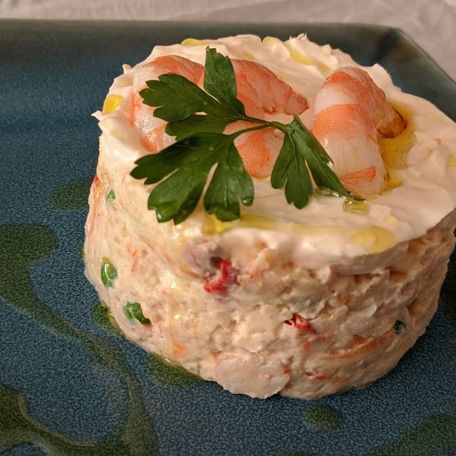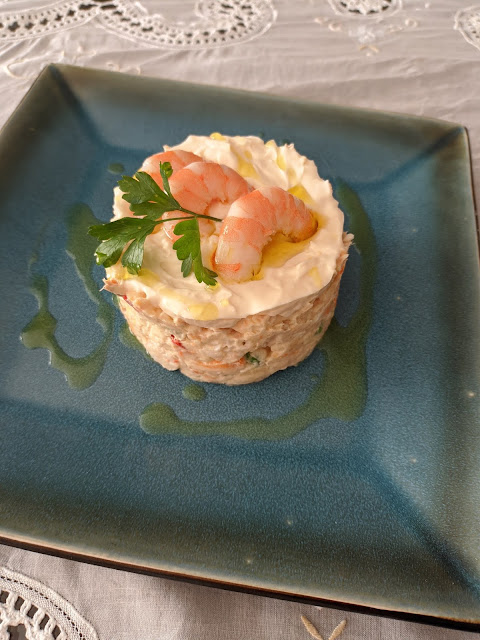 ÉSTA ENSALADILLA LA APRENDÍ CUANDO TRABAJABA EN EL RESTAURANTE LA PESQUERA DE FUENGIROLA, YO SIEMPRE ELABORABA LA ENSALADILLA CON LAS PATATAS CORTADAS A CUADRITOS Y SOLAMENTE CON ATÚN, ÉSTA ES DIFERENTE.