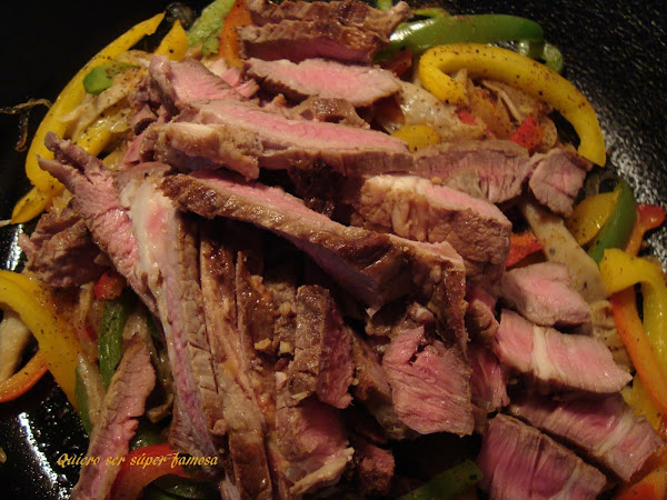Cortar la carne a tiras y mezclar hasta que se caliente.