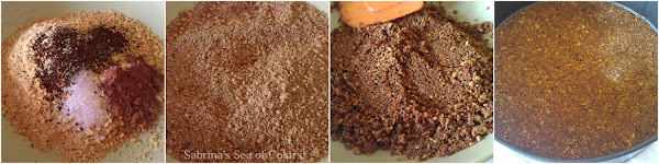 Seguimos con la base de galleta. Trituramos las galletas y mezclamos con el café, el azúcar vainillado, el cacao y la mantequilla derretida. Forramos la base del molde de 20 cm de diámetro y refrigeramos mientras hacemos la mousse de chocolate. Para ello derretimos el chocolate negro, incorporamos la leche y la gelatina remojada previamente como hemos hecho con la mousse anterior y añadimos la mantequilla para que derrita con el mismo calor del chocolate. Incorporamos la nata (crema de leche) que tendremos montada junto con el azúcar.