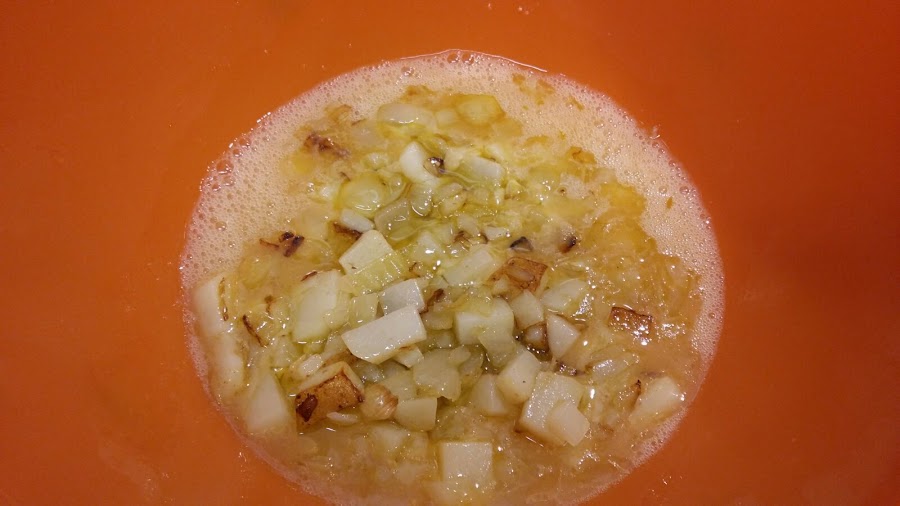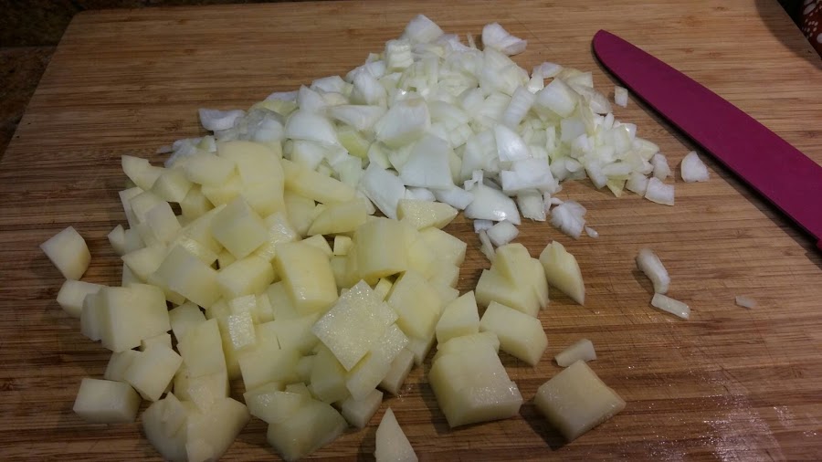 Cortamos las patatas y la cebolla igual que cuando hacemos tortilla de patatas.