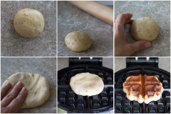 5. A la mañana siguiente dividir la masa en porciones de 80 g y formar bolitas. Dejar reposar tapadas por 15 minutos. Mientras precalentar la wafflera.