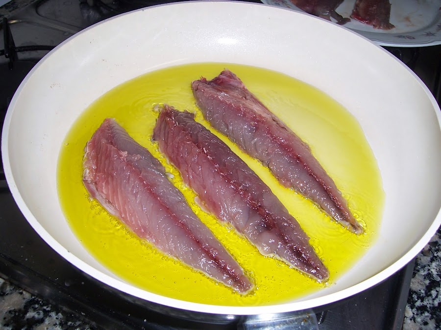 Ponemos aceite de oliva en el fondo de una sartén o cazuela y marcamos ligeramente el pescado por ambos lados pero sin que se haga por dentro y apartamos.