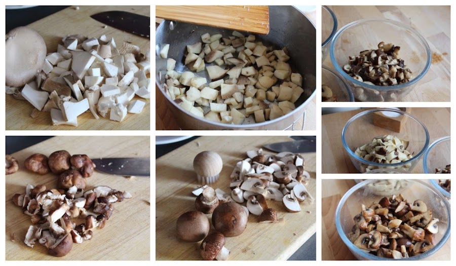 Mientras, limpiamos y troceamos las setas. Pedazos grandotes.