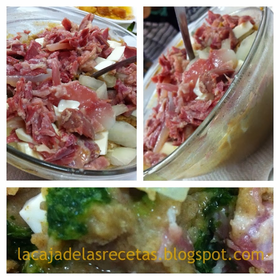 A los que se pueden añadir al gusto carne de ternera, tocino, o alguna verdura del puchero, y como véis en la primera foto, incluso manzana (a mí ese contraste me encantó), o también queso blanco de cabra.