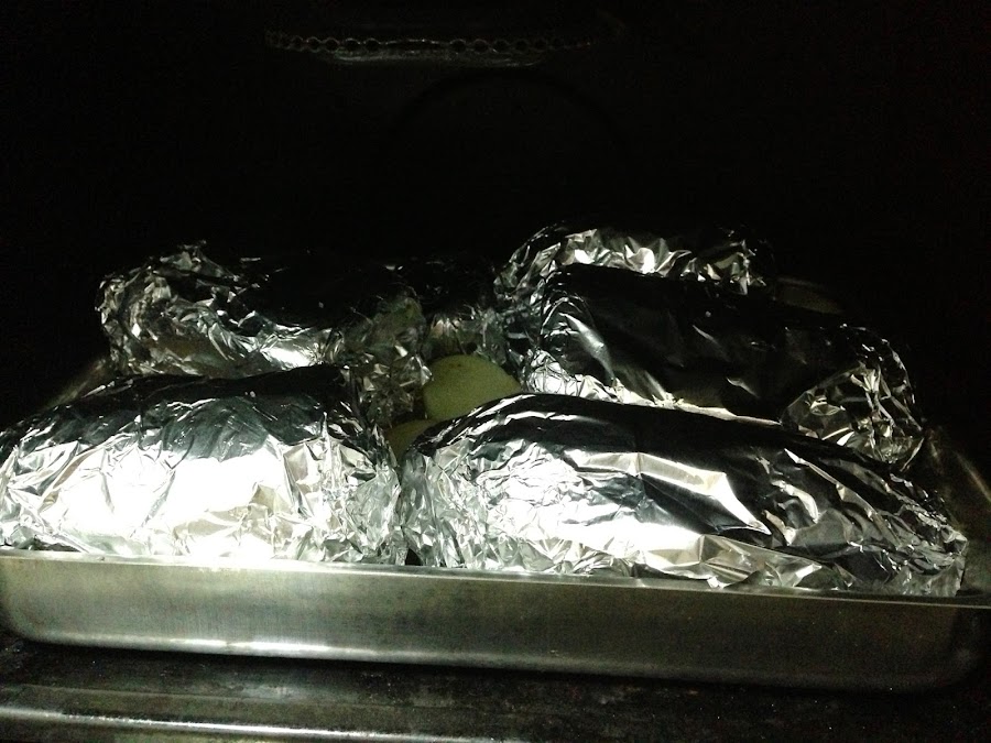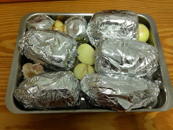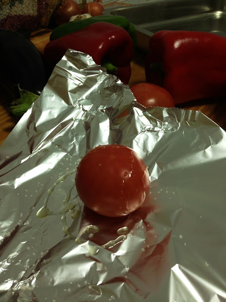 Con los tomates hacemos lo mismo; aceite, sal y envueltos en papel de aluminio.
