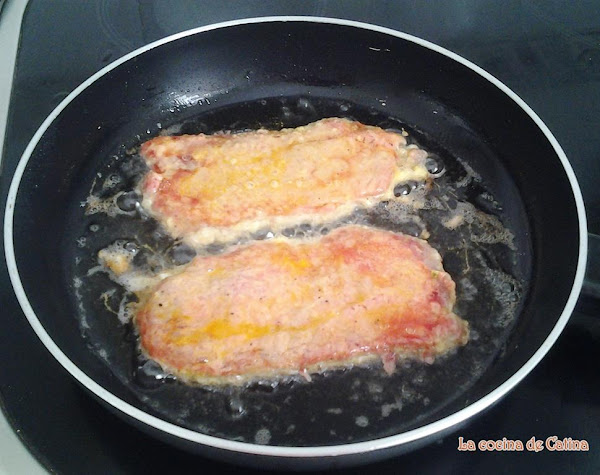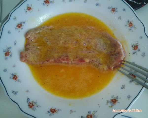 Preparación:Salpimentar los escalopes. Mezclar el huevo, la sal, la pimienta y una cucharadita de aceite de oliva.