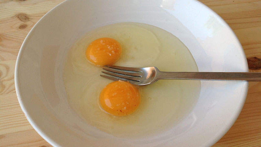 Prepara un par de huevos batidos.