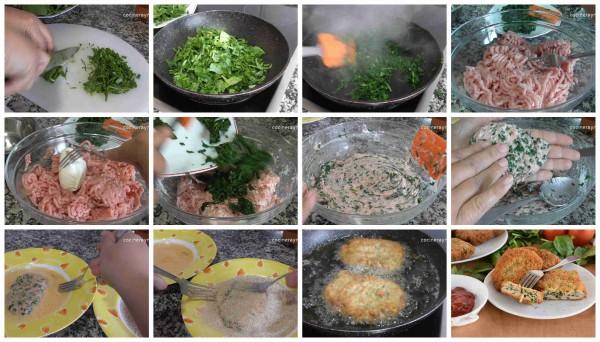 Con la ayuda de una cuchara sacamos raciones de uno 80 gr aproximadamente, primero le damos forma redondeada y luego aplastamos con las manos para darle la forma de escalope o filete.