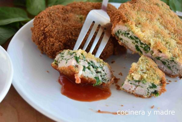 Ya veréis que bueno estos escalopes de pollo y espinacas; además también se pueden congelar una vez que estén empanados.