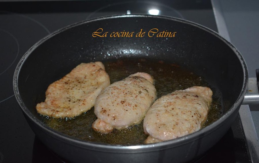 La carne de cerdo tenemos que cocinarla bien para consumirla, en este caso que se trata de escalopines, tenemos que freírlos por ambas caras..