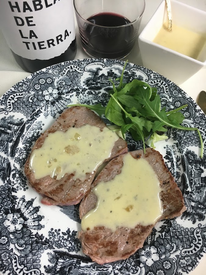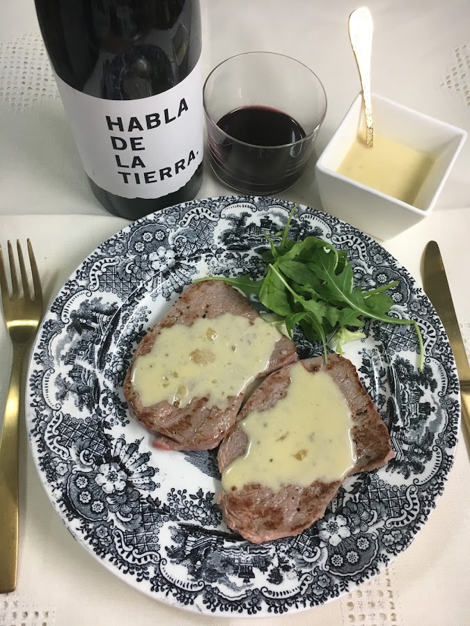 El vino con el que he acompañado la carne es Habla de la Tierra, un vino extremeño de Trujillo (Cáceres), con 4 meses de barrica y un sabor muy fresco.