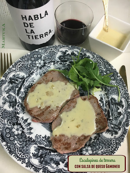 El resultado es una carne tierna, poco hecha, casi marcada en la plancha y una salsa de queso para acompañar elaborada con queso Gamoneu que compré en Cangas de Onís que le aporta un sabor delicioso. Además se prepara en un instante.