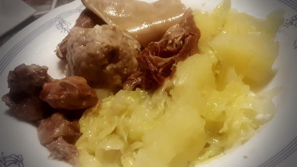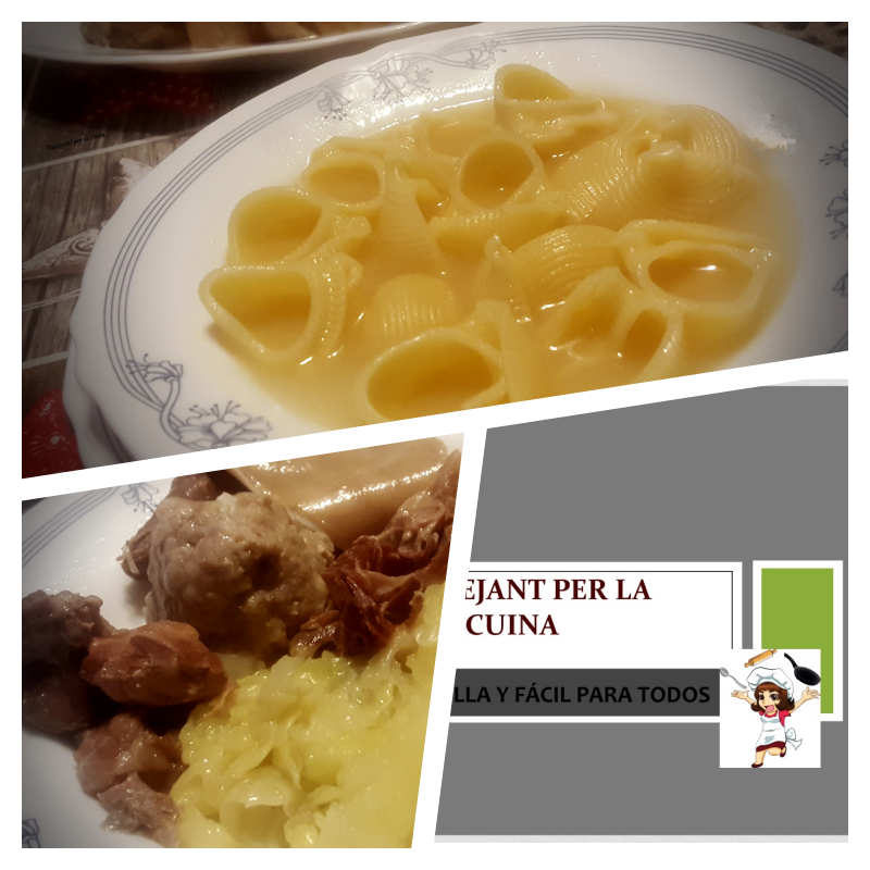 En Navidad, en muchas casas se toma cocido, y en Catalunya, una variedad: La Escudella i Carn dOlla. Una elaboración que mezcla el caldo de hervir las verduras junto con la carne, con una pasta: Los galets de Nadal, a la que incorporamos una “albóndiga grande”, la pilota que es de una forma muy parecida a una pelota de rugby.