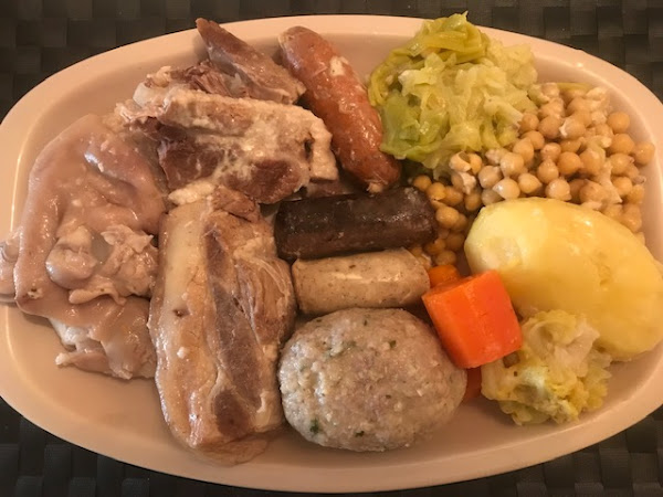 Deja que se temple un poco y cuela con cuidado de no romper las carnes, calcula el caldo para los que seáis y pon en una olla, cuando hierva añade los galets y cuece el tiempo que indique el fabricante, mientras prepara aparte las verduras y las carnes, cubre con papel de aluminio y reserva en el horno a 50º para que mientas comáis la sopa no se enfríe, se suele aliñar (cada uno en su plato) con sal, pimienta, aceite, pimentón, ajo molido....