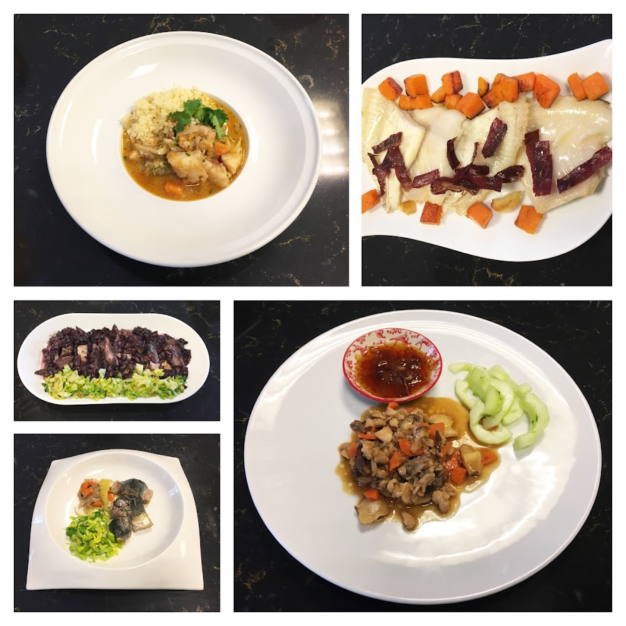 Personalmente, los dos que más nos gustaron fueron el tajín de pescado y el jurel con salsa japonesa (primero y último de la imagen, respectivamente), ambos con sabores muy exóticos. El de tajín nos recordó a nuestros viajes a Marruecos, con esos platos tan ricos llenos de especias y de sabor, ¡es el primero que vamos a preparar en casa!