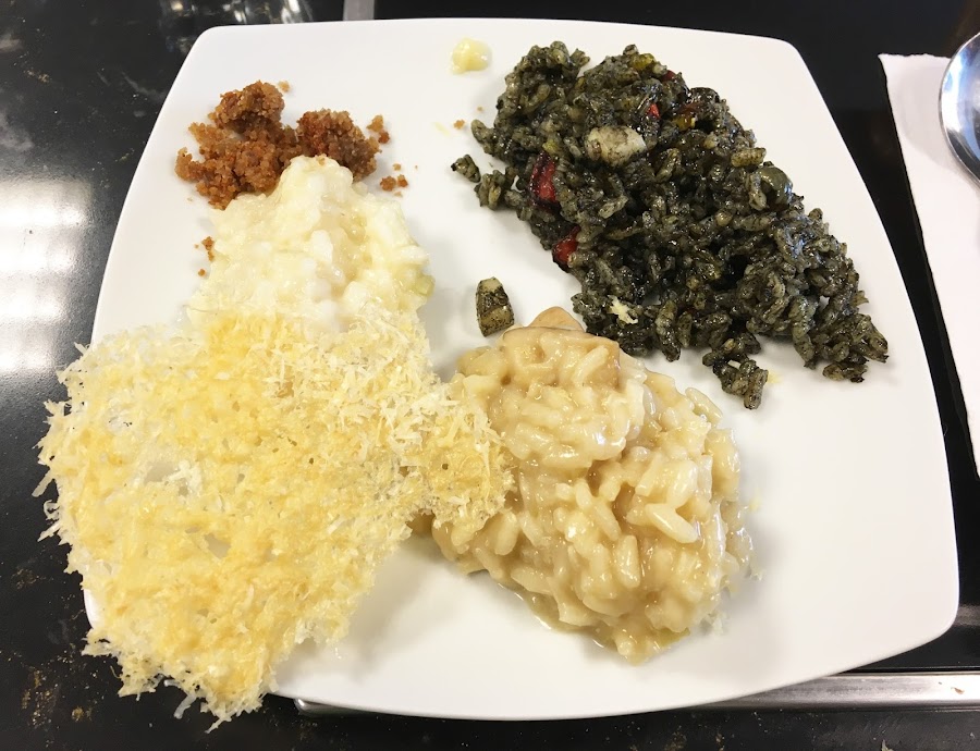 - El primero fue de arroces y risottos, donde aprendimos a preparar arroz caldoso con carabineros, arroz negro con allioli casero, risotto ai cavolfiori (con coliflor) y pangrattato y risotto cremoso con setas, perejil y crujiente de parmesano.