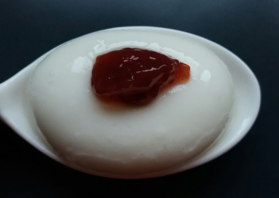 Para las esferas de Yogurt, si lo usáis azucarado, no necesitáis nada más, aparte del baño de alginato y agua, claro jeje. Yo lo compré natural y le eché unas gotas de sacarina. Lo removemos un poco y cogemos una cucharada y la ponemos en la mezcla de alginato, dejamos reposar los 3 minutos y pasamos al baño de agua, escurrir y servir. Yo lo acompañé con un poquito de mermelada de fresas.