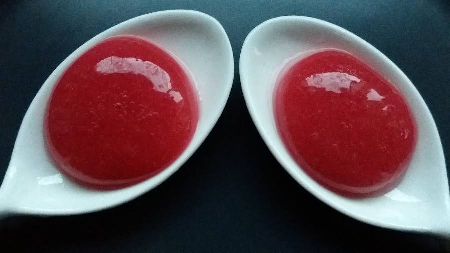 hola a tod@s!!! Es día 5 y el día del reto COOKINGTHECHEF un reto en el que Abril &Aisha eligen a un gran Chef... un mes español, y al otro, uno extranjero, pero todos geniales. Me encanta este reto porque aprendo un montón!! Este mes es el segundo aniversario del reto y nos han puesto las cosas difíciles, han elegido a uno de los más grandes, FERRAN ADRIÀ. Cuando lo leí me quedé blanca... ay madre!!! pero que receta hago yo de este hombre!! Luego, investigando, he visto que también tiene algunas recetas asequibles, pero ya me daba igual, yo quería complicarme la vida jajaja, quería hacer ESFERIFICACIONES!! Yo había hecho esferificación directa, que son esferas pequeñitas, y usamos gelatina o Agar-Agar (Mirad Aquí), en esta ocasión, quería hacer esferificación inversa. Unas esferas más grandes, con una pequeña película de gelatina alrededor que al presionar con la lengua explota y te llena la boca del sabor elegido. Se pueden hacer tan to saladas como dulces. Pensaba que era algo raro, casi imposible de que lo hiciera yo. Pero que va!!! Lo más difícil es decir el nombre de los ingredientes que necesitas, la elaboración es súper fácil. Otra cosa es que te queden perfectas, pero todo se andará ;).