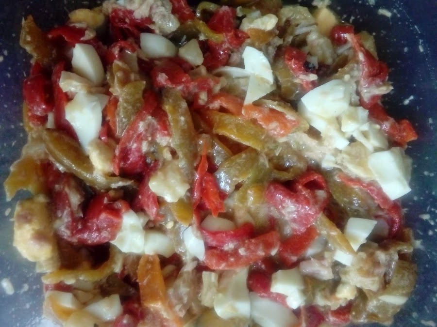 Hoy vamos con otra receta fácil pero sana y sabrosa. El esgarraet valenciano es sólo con bacalao, pimientos rojos asados y ajo picado, todo bien aderezado con AOVE. En esta ocasión además le añadí huevo duro y atún y obtenemos un moje bien completo para hacer unas tostas.