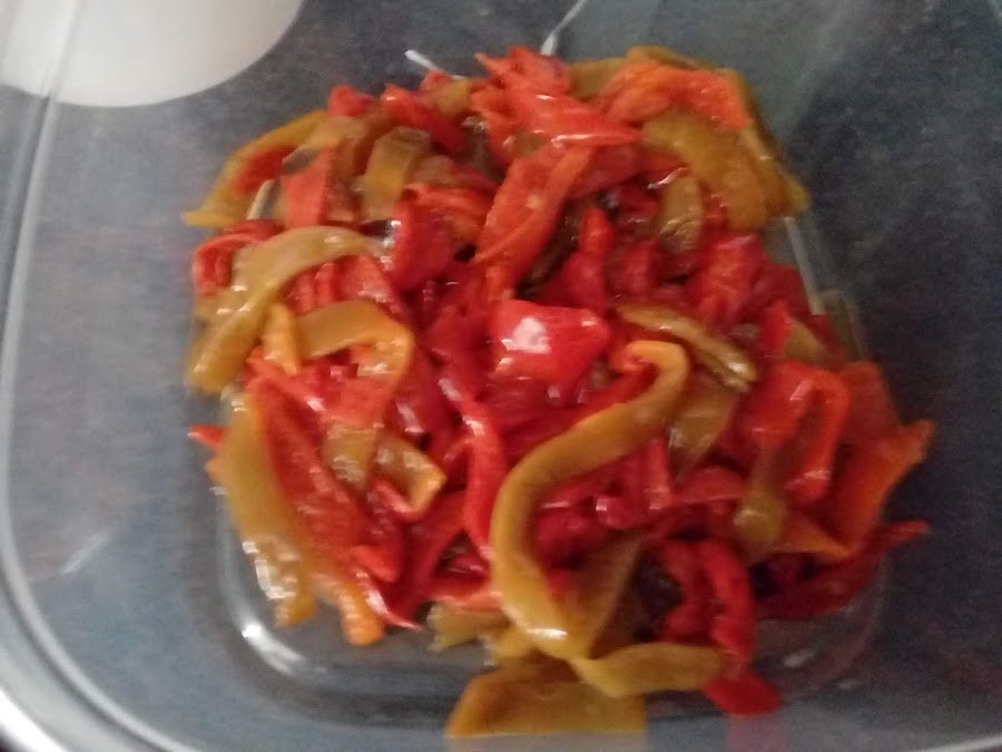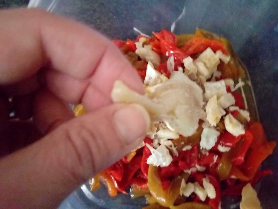 Ponemos en un bol el pimiento con su líquido de conservación.