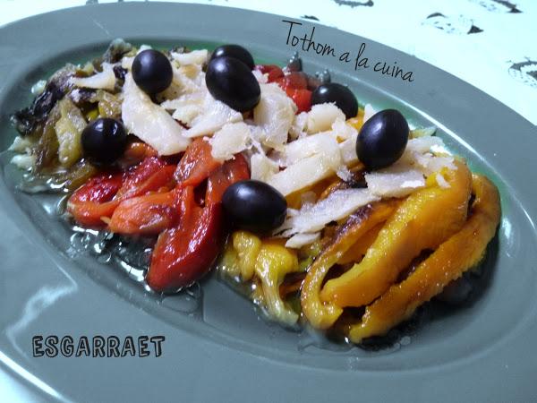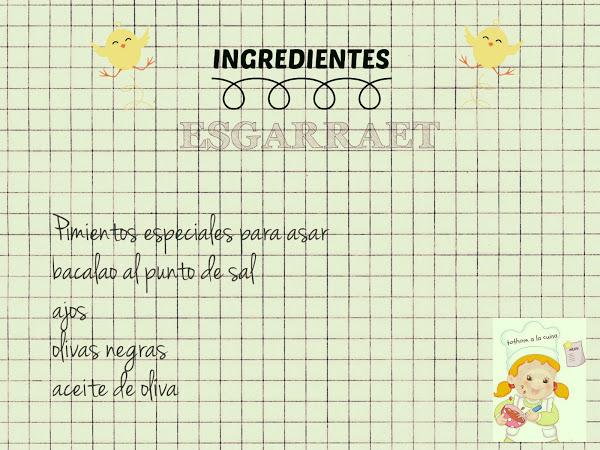 Esta que os traigo hoy la hice por casualidad. Bueno, a decir verdad ya la había comido más veces pero no sabía que tenía este nombre. Otro nombre para mis conocimientos culinarios. En el súper ví un envase de bacalao que ponía "especial esgarraet", y pensé que con lo que me gusta el bacalao buscaría en San Google la receta y la haría.