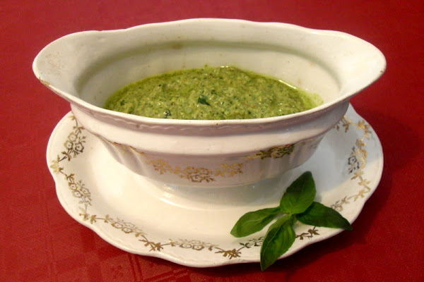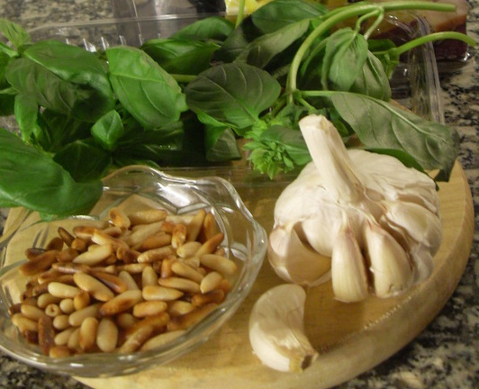 Preparación:Poner en la picadora las hojas de albahaca frescas, el aceite de oliva,los piñones o frutos secos, el ajo y una cucharadita de sal. Triturar hasta que este a nuestro gusto. Reservar.
