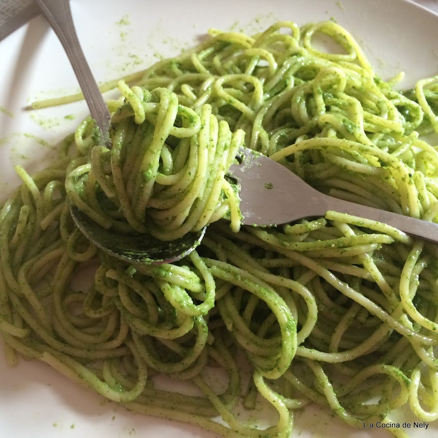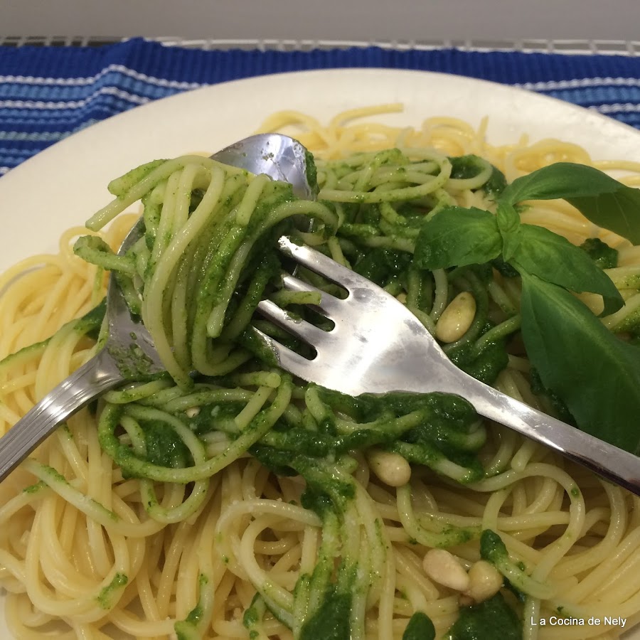 Escurrir la pasta , añadir la salsa y decorar con unos piñones y una hoja de albahaca y listo para comer.