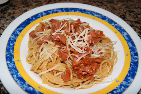 Enfriamos la pasta y la escurrimos muy bien, la incorporamos a la sartén con la salsa y lo rehogamos un minuto para que todo esté bien mezclado. Servimos en una fuente o en los platos, espolvoreando con queso rallado justo en el momento de llevar a la mesa.