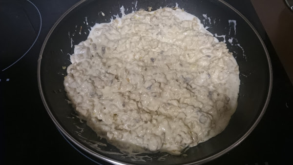 ya por último pasado este tiempo miraremos si está ya todo bien hecho si es así procederemos a ponerle la nata (crema de leche), iremos removiendo durante 5 min. aproximadamente, probaremos para ver que tal está de sal, si hiciese falta añadiremos al gusto,