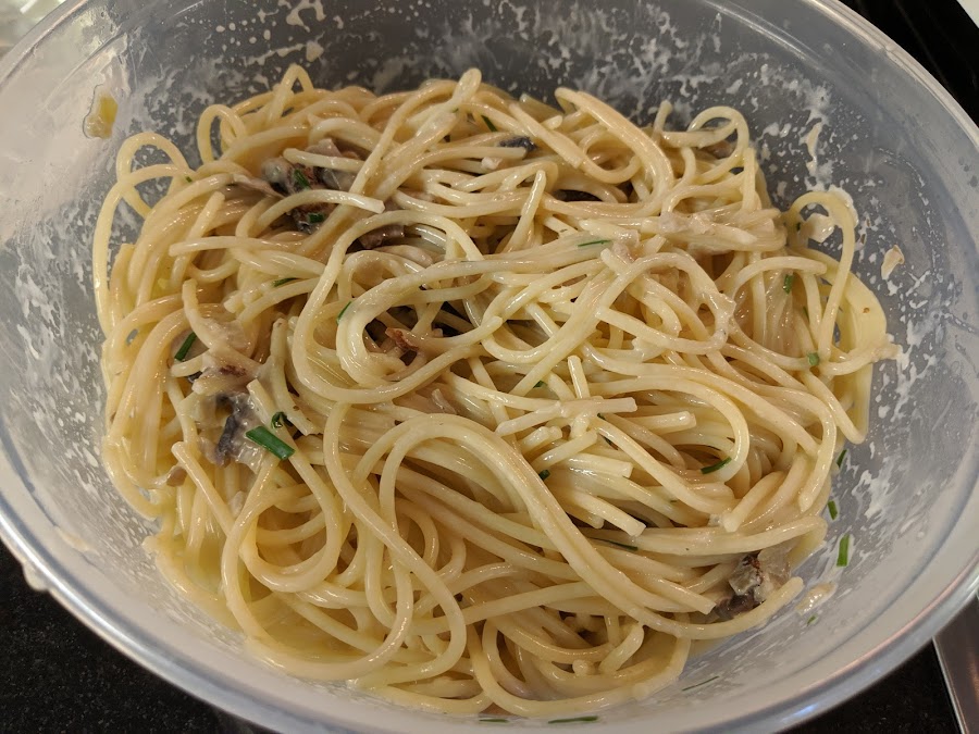 Lo ideal es preparar pasta y crema a la par y servir inmediatamente cuando estén las 2 preparaciones acabadas. Pero como te he explicado con una olla y 2 cubetas no se nota la diferencia.