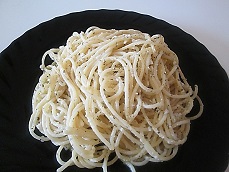 La salsa genovesa esta hecha con ajos, albahaca, queso y aceite de oliva. Ideal para acompañar cualquier tipo de pasta. En el caso de hoy, unos espaguetis.
