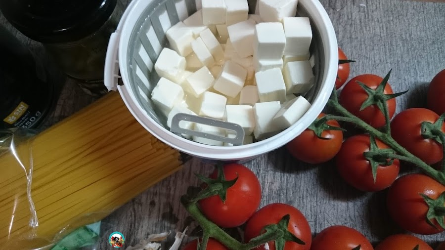 2.- En una sartén añadimos un poco de aceite de oliva, pelamos los ajos y los sofreímos sin que lleguen a quemarse. Lavamos los tomates y los secamos y partimos en gajos. Añadimos los tomates y los salteamos con los ajos. Picamos las aceituna y dejamos otras enteras. Escurrimos el queso o lo cortamos en dados. Ponemos los espaguetis dentro de la sartén, los mezclamos con los tomates y los ajos, incorporamos las aceitunas, el queso, las alcaparras escurridas, el tomillo fresco esparcido por encima y un poco de pimienta blanca recién molida. Servimos en seguida.