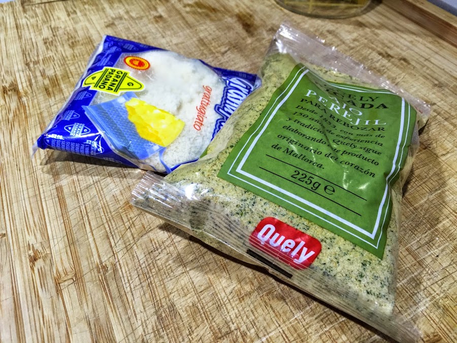 6. Por último añadimos el queso parmesano en polvo al gusto y un la cucharadita de pan rallado con ajo y perejil por encima. Servimos caliente inmediatamente.