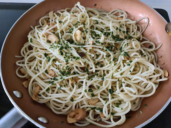 Vamos hoy con una receta sencilla y nutritiva....ESPAGUETIS AGLIO E OLIO, una receta tradicional que se prepara en un pis pás y que , por lo menos para nosotros, está buenísima.