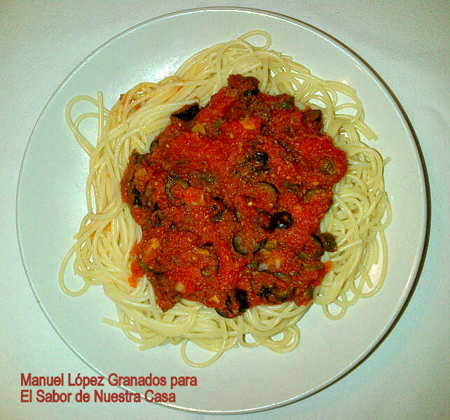 Incorpora el tomate y ya puedes subir el fuego para que se haga la salsa. Cuando esté casi hecha, que todavía tenga jugo, pon el azúcar para quitar acidez al tomate. Agrega en este punto las aceitunas y las alcaparras. No añadas sal, las anchoas tienen suficiente.
