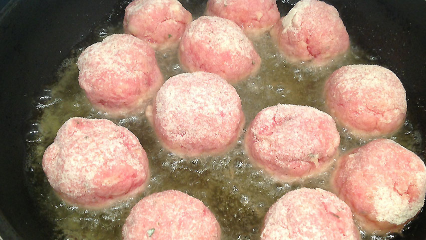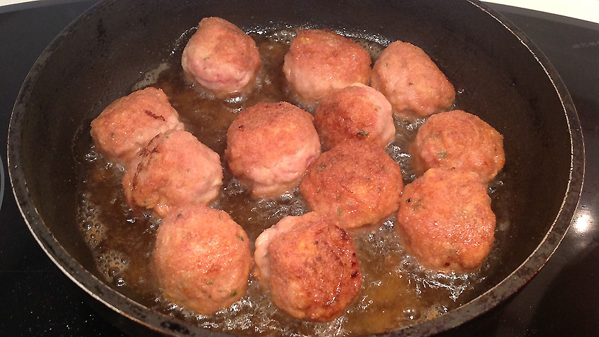 Las albóndigas se deben freír someramente para que queden jugosas. Ya se terminarán de hacer en la salsa.