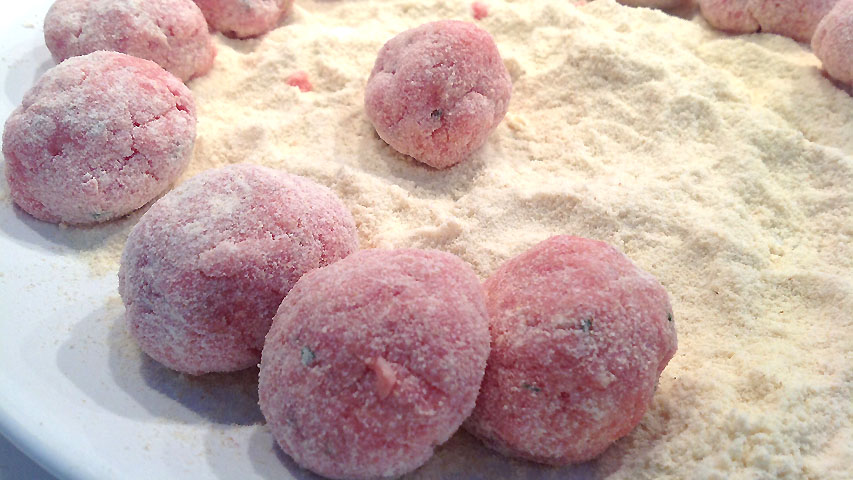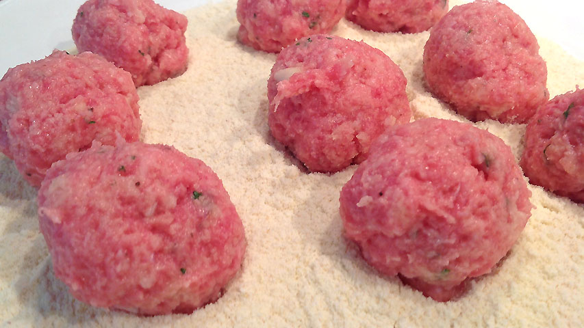 Ahora se le da forma a las albóndigas y se pasan por harina de trigo. A mi me gusta usar trigo duro pero sino usa harina normal de todo uso.