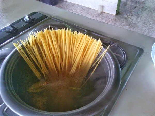 Cocinar en agua abundante la pasta , yo uso 2 o 3 hojitas de laurel, sal y un poquito de aceite