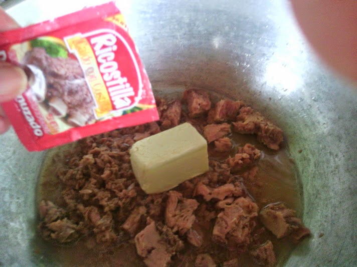 Mezclar el atún con todos los aliños(arriba descritos) sal, laurel, comino, azafrán o color, pimienta
