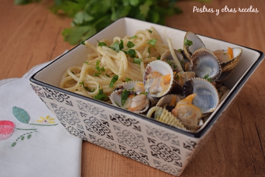 También, recordaros que tenemos publicados en nuestro blog Postres y otras recetas otros platos similares de pasta con marisco, como son Espaguetis a la marinera y Espaguetis con almejas.