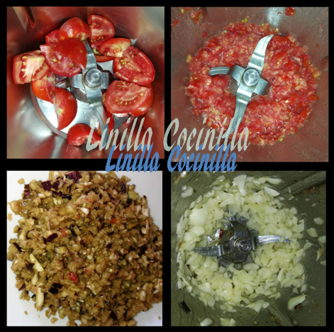 1. Cortamos los tomates en cuartos y ponemos en el vaso, programamos 4 seg/vel 5 y reservamos.