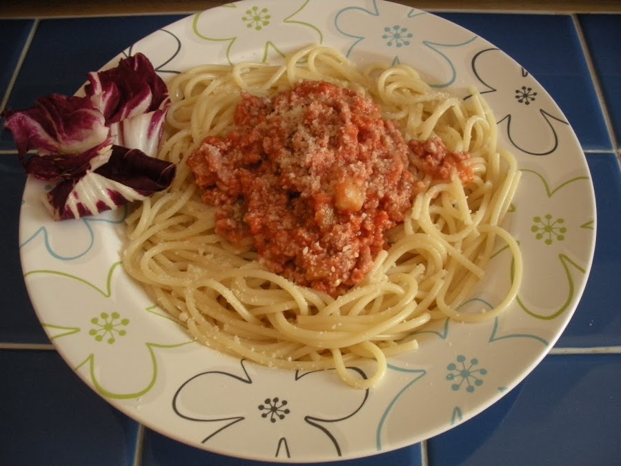 Transcurrido el tiempo de cocción, escurrimos la pasta, la servimos añadiéndole la salsa boloñesa y un poco de queso rallado