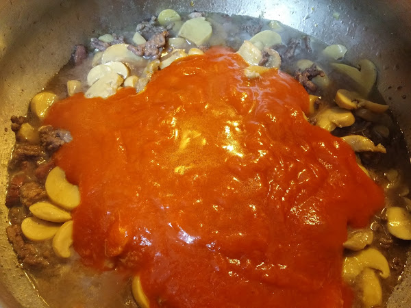 Les damos unas vueltas y añadimos la salsa de tomate.
