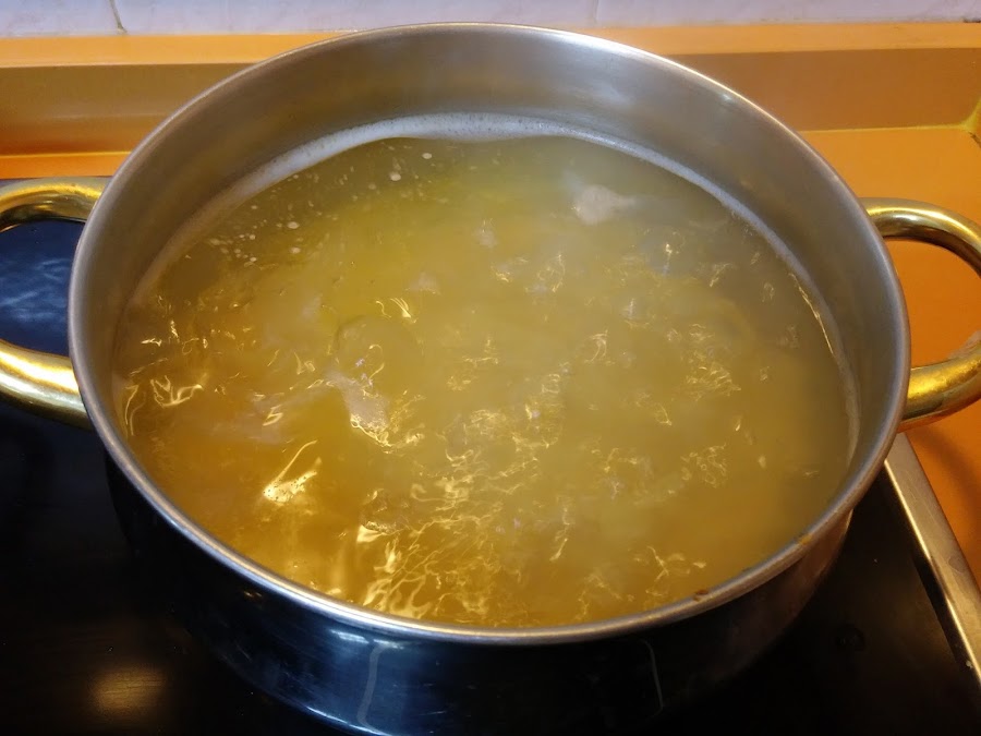Sazonamos con sal al gusto y un poco de pimienta blanca. Dejamos unos 15 minutos. Mientras vamos a cocer la pasta con agua abundante, sal y aceite.