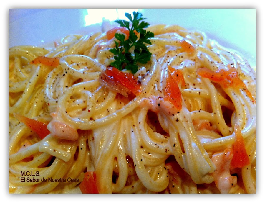 Agrega los espaguetis y envuélvelos en la crema durante unos minutos.