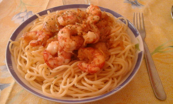 Aquí os dejo el resultado de un sábado de estos de los que no sabes que hacer de comer.....miras por la nevera, por el congelador...y nada. Y después de mucho pensar te decides por un plato que hace mucho tiempo que no comes: los espaguetis. Como últimamente estoy cuidando un poco lo que como ( procuro no pecar en demasía...... ) pues hacer estos espaguetis tampoco interrumpen la linea del no pecar. Ademas son muy fáciles de hacer y rápidos, y no temáis por el alcohol que lleva si lo vais a dar a los niños porque como sabéis, con el calor se evapora y solo deja el sabor que tampoco es mucho.