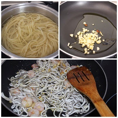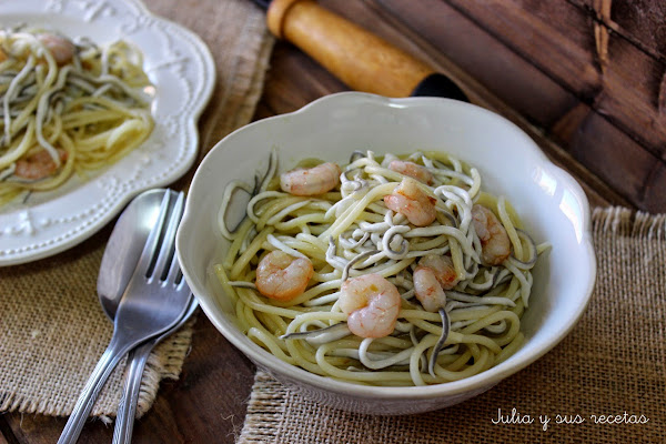 Los ingredientes son tan fáciles de conseguir y su elaboración tan sencilla y rápida que no vais a poder resistiros a hacerla...bueno, eso suponiendo que os gusten las angulas sucedáneas y las gambas...claro!!