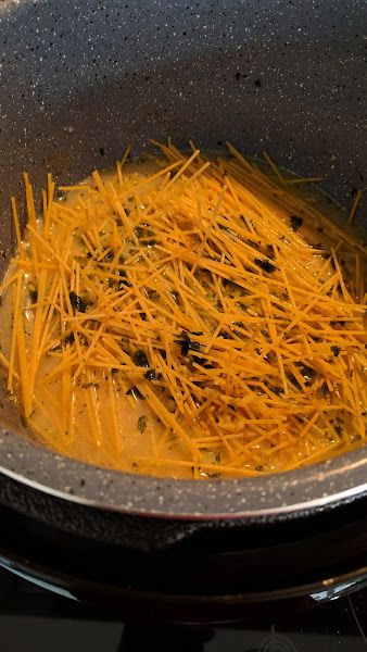 Añade el resto de la albahaca muy picadita y programa la mitad del tiempo que indique el fabricante en el paquete. Por ejemplo, si dice 8 minutos al dente yo tengo que programar 4 en menú guiso a 160 grados y presion predeterminada. Despresurizamos manualmente en cuanto termina el tiempo
